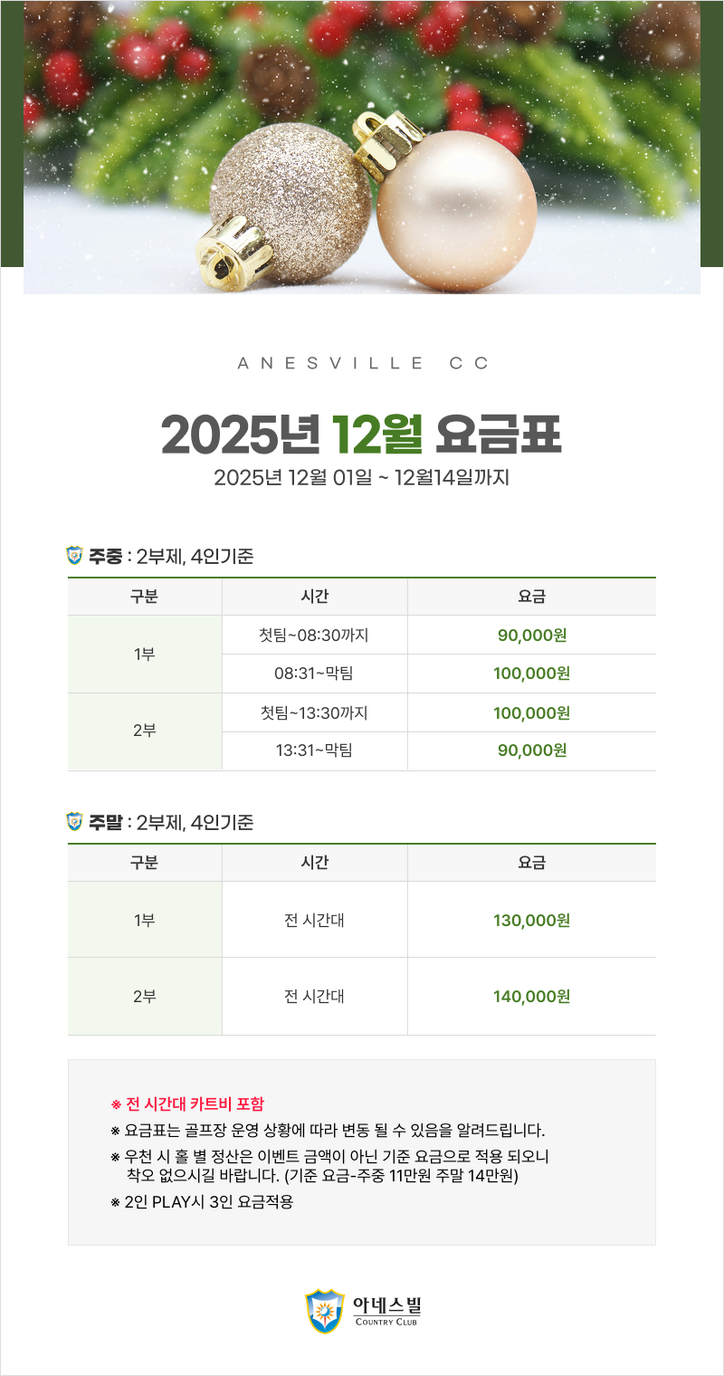 2025년 12월 01일~12월 14일 요금표
