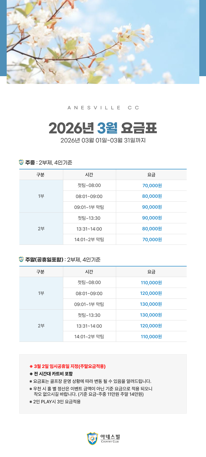 2026년 3월 1일~3월 31일 요금표